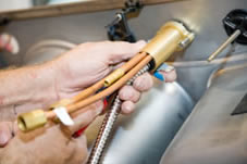 | Finally, take the aerator out of the new faucet, turn on the water, and let it run for a few moments to flush out any metal scraps and such that might be left from the manufacturing process. Enjoy your handiwork and take pride in knowing that you "did it yourself". |